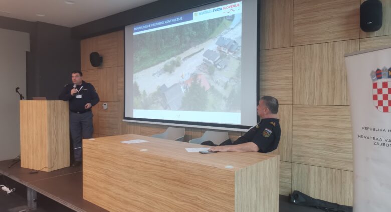 Marko Adamič, predsednik Komisije za požare v naravi pri Gasilski zvezi Slovenije, je na srečanju sodeloval s prispevkom o dolgotrajni intervenciji ob letošnjih poplavah in neurjih v Sloveniji.